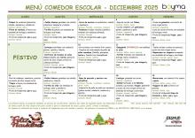 Menús escolares del comedor para este mes de diciembre de 2025.