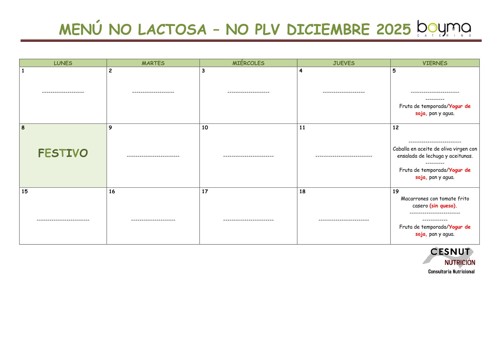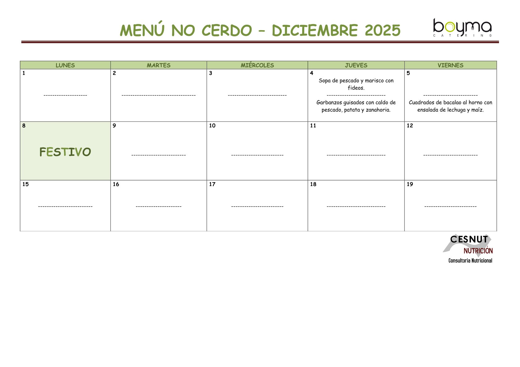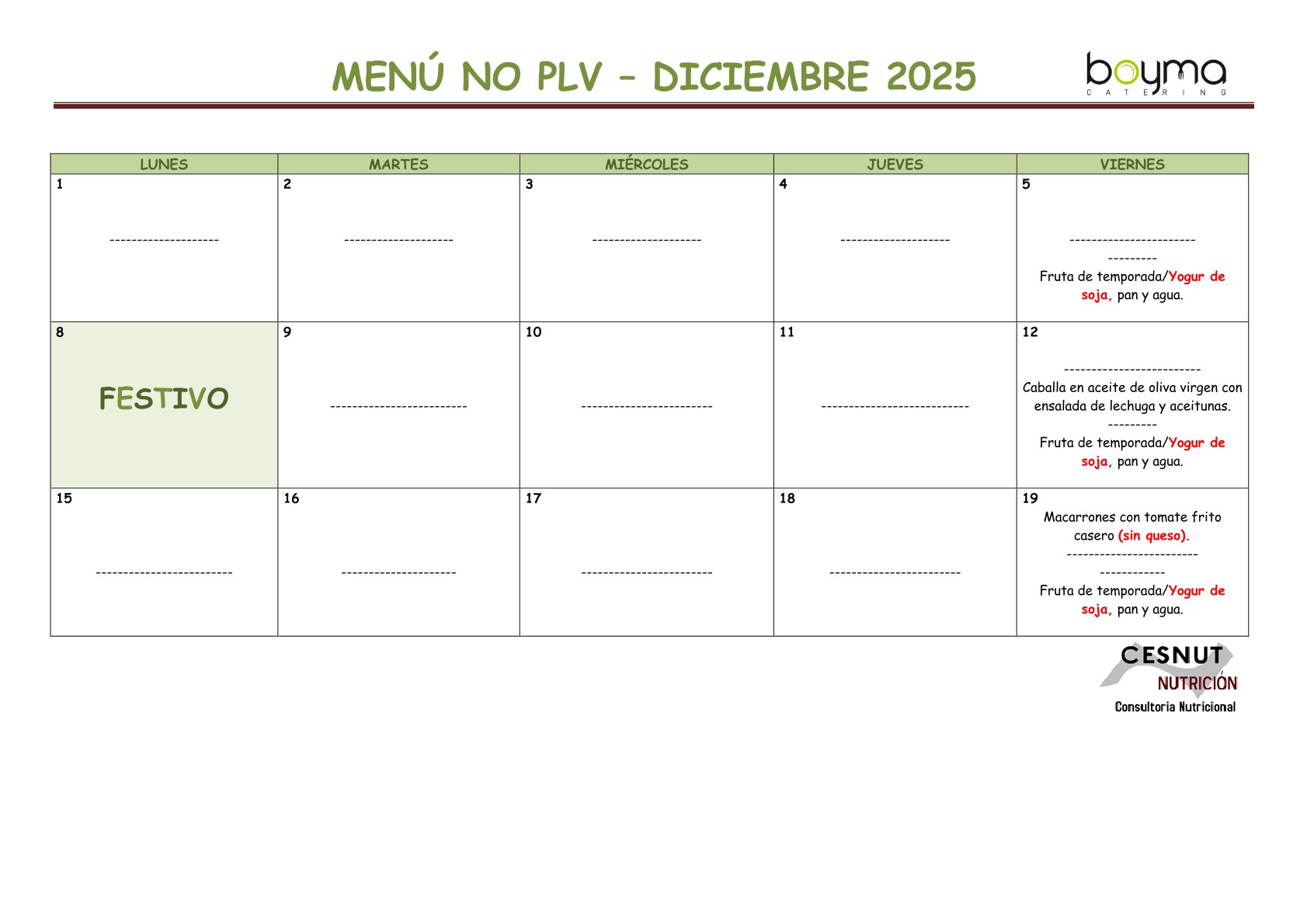 MENÚS DEL COMEDOR: DICIEMBRE 2025